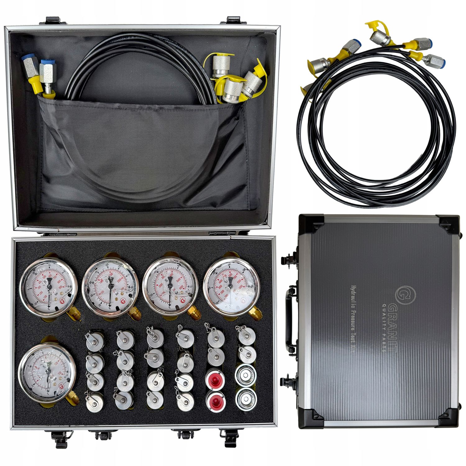 Zestaw pasuje do większości układów hydrauliki siłowej w maszynach budowlanych, rolniczych, przemysłowych i transportowych. Idealny do serwisu, diagnostyki i regulacji.